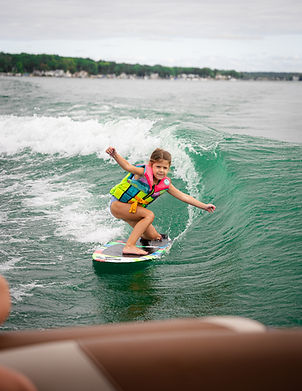 Children between the ages of 6-14 are encouraged to sign up for our summer wakesurf camp, where they'll be under the instruction of licensed, USCG-certified captains and professional wakesurfers. Safety is our number one priority. All of our crew members are CPR and first-aid certified. Our coaches cater to all skill levels from kids learning for the first time to others who may be ready to throw the rope or learn a new trick. Our camp program focuses on progression over the course of multiple days on the water. You can except your child to be excited and "stoked" to share their wakesurf progress each day. We pride ourselves on creating a safe and enjoyable environment where kids feel competent, excited, and ready to learn!